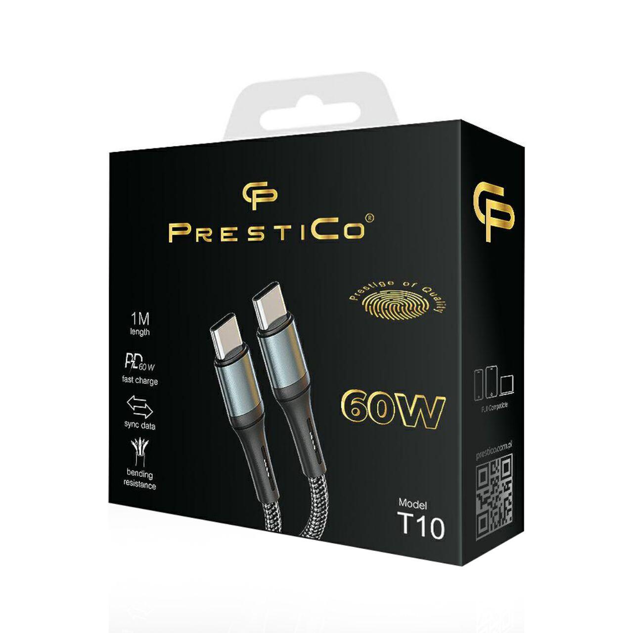 Prestico Cablu T10 Type-C la Type-C Fast Charge, PD, 60W, 1m, Negru