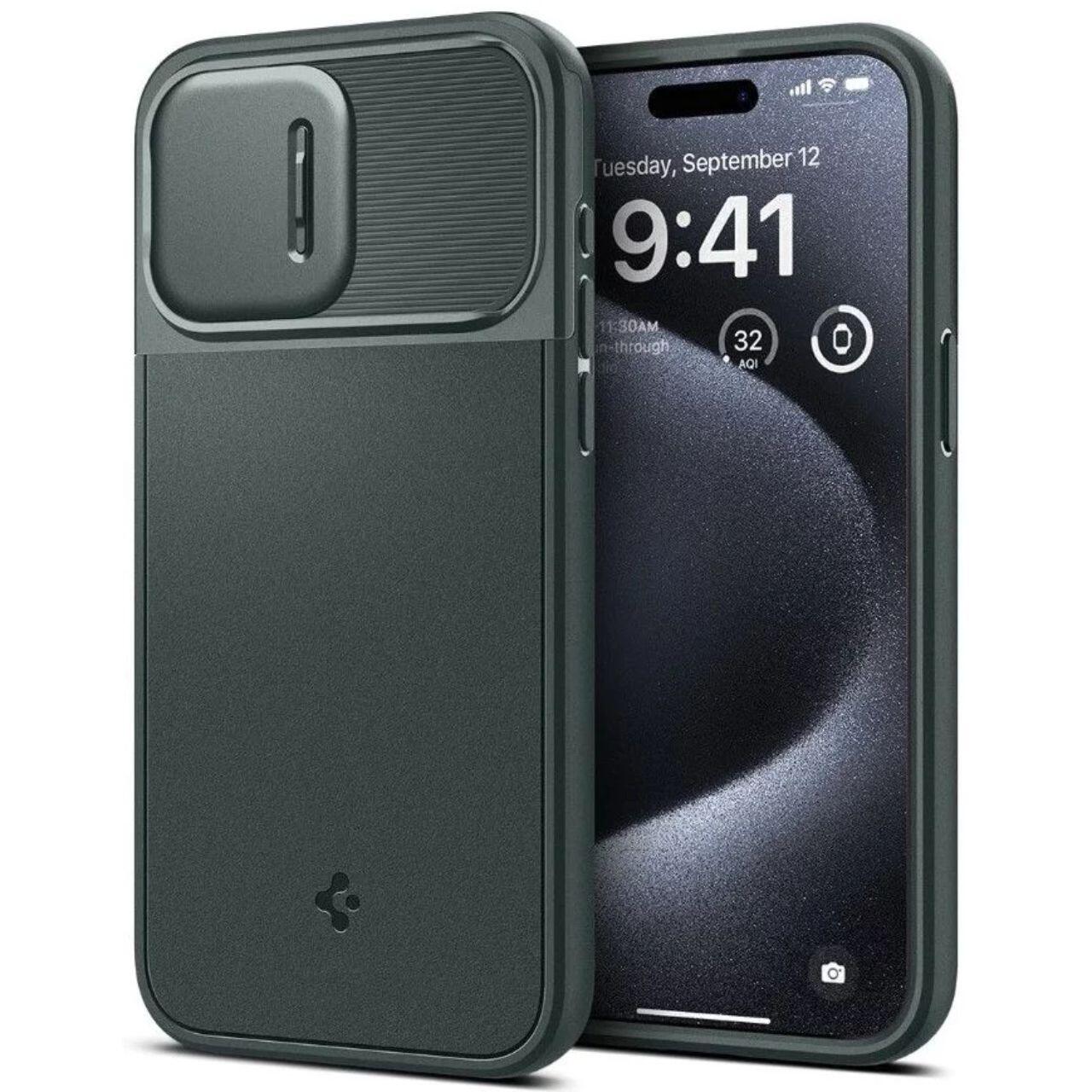 Spigen Husa Optik Armor MagSafe iPhone 15 Pro Abyss Green