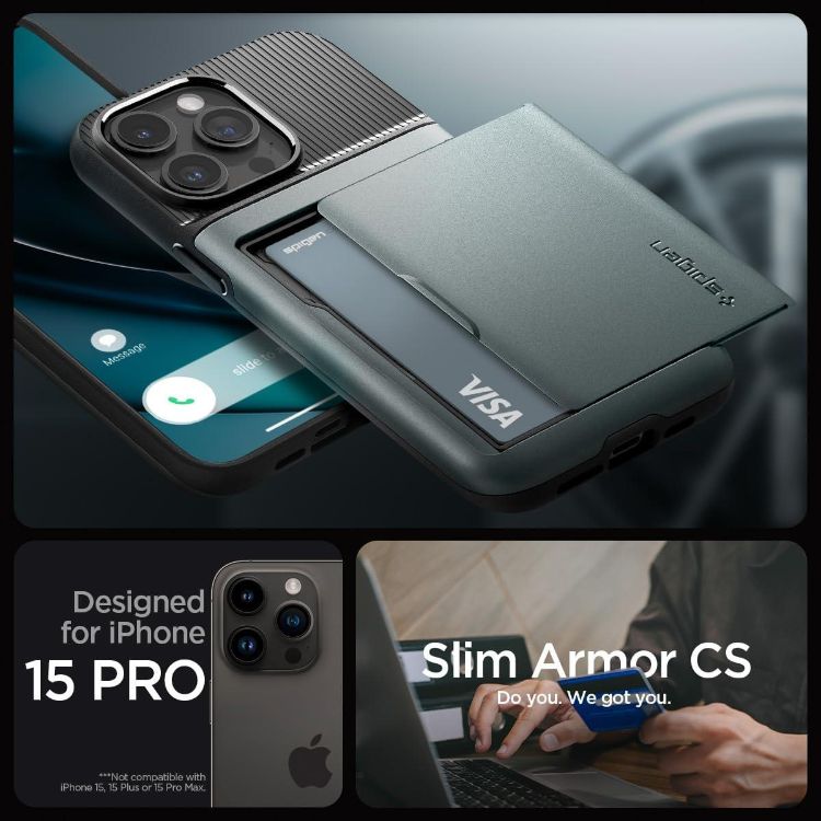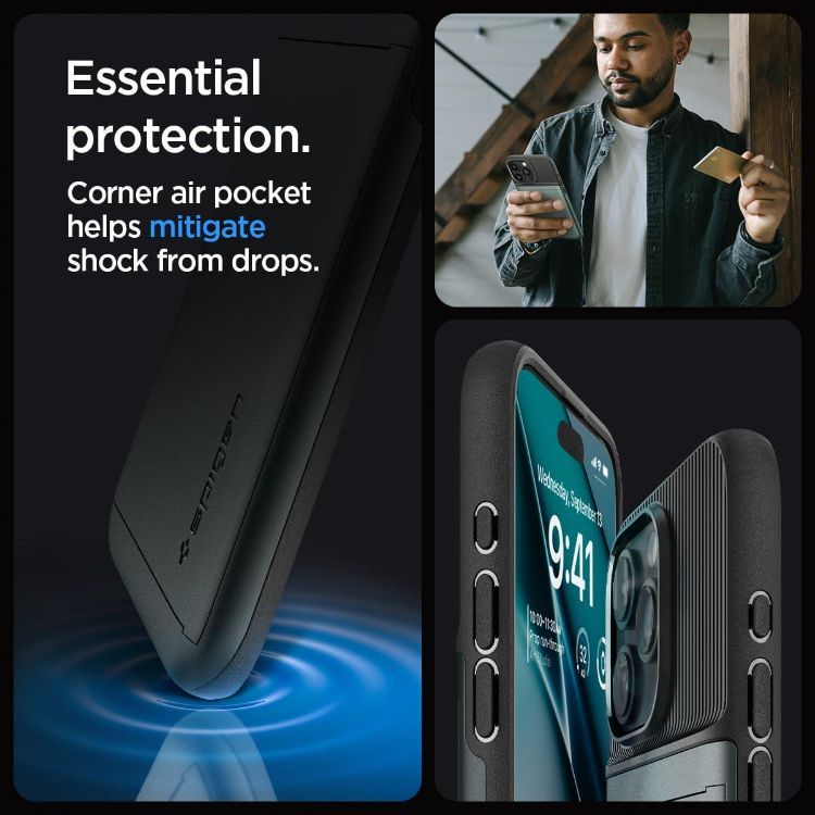 Husa Slim Armor Cs pentru iPhone 15 Pro iti ofera o tehnologie incorporata de absorbtie a socului pentru a-ti proteja dispozitivul impotriva impactului, din orice unghi.