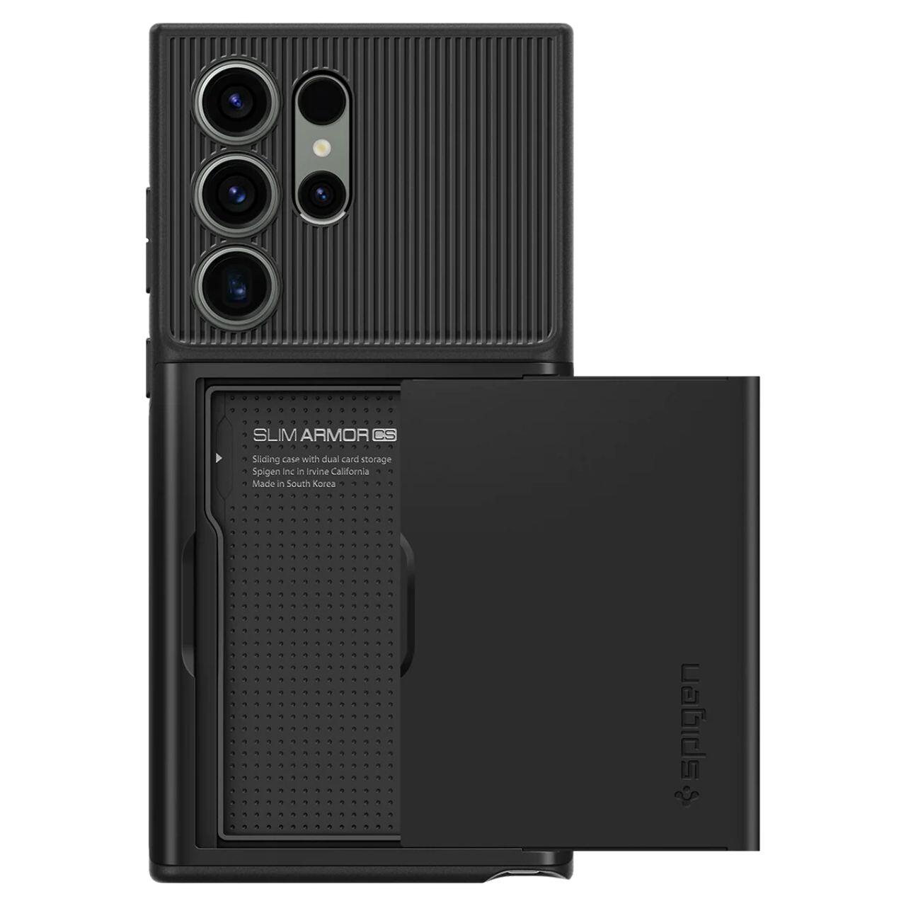 Husa Slim Armor Cs pentru Samsung Galaxy S23 Ultra de la Spigen realizata dintr-o combinatie de doua materiale complementare - TPU care absorb socuri si policarbonat de intarire. Datorita constructiei din doua parti, carcasa ofera protectie fiabila pentru dispozitivul dvs. atat impotriva zgarieturilor, cat si impotriva caderilor.