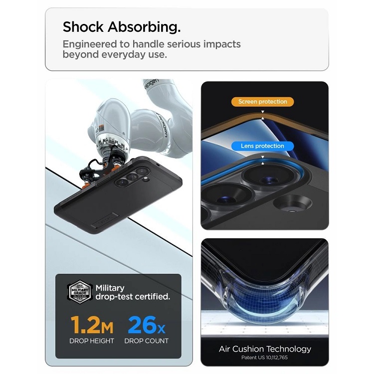 Husa respecta standardul militar de rezistenta MIL-STD 810G-516.6, fiind testata pentru multiple caderi, ceea ce o face o alegere excelenta pentru utilizatorii activi sau pentru cei care doresc o protectie sigura in orice situatie.