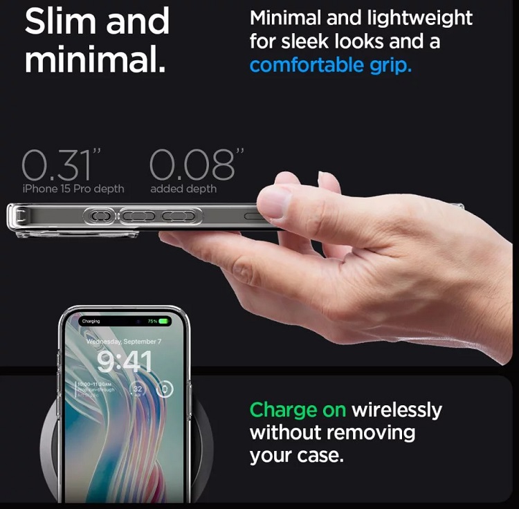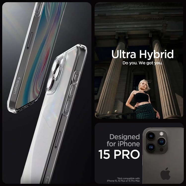 Husa Ultra Hybrid pentru iPhone 15 Pro de la Spigen este o husa care imbina un design minimalist si o protectie la cel mai inalt nivel. Fabricat din material TPU durabil si flexibil, care inconjoara in siguranta intregul dispozitiv, astfel incat sa asigure o prindere perfecta. In plus, completat de un panou puternic din policarbonat care protejeaza impotriva zgarieturilor.