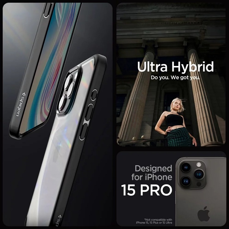 Husa Ultra Hybrid pentru iPhone 15 Pro de la Spigen este o husa care imbina un design minimalist si o protectie la cel mai inalt nivel. Fabricat din material TPU durabil si flexibil, care inconjoara in siguranta intregul dispozitiv, astfel incat sa asigure o prindere perfecta. In plus, completat de un panou puternic din policarbonat care protejeaza impotriva zgarieturilor.