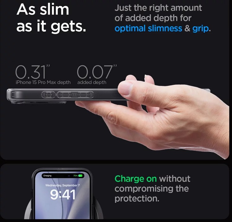 Nu restrictioneaza accesul la porturile externe si protejeaza eficient telefonul in timpul caderilor, este solutia de protectie perfecta, mentinand in acelasi timp greutatea si grosimea minime.Montarea si demontarea de pe telefon se face usor datorita materialului flexibil din care este confectionata pe margini. Husa este compatibila cu incarcarea wireless.