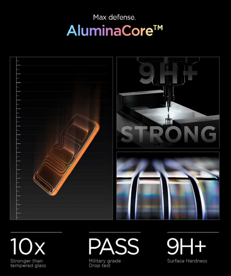 Sticla este confectionata dintr-un strat subtire care este intarit la 9H in timpul procesului de productie , acest lucru o face rezistenta la zgarieturi chiar si in contact cu obiecte ascutite precum chei sau cutite.
