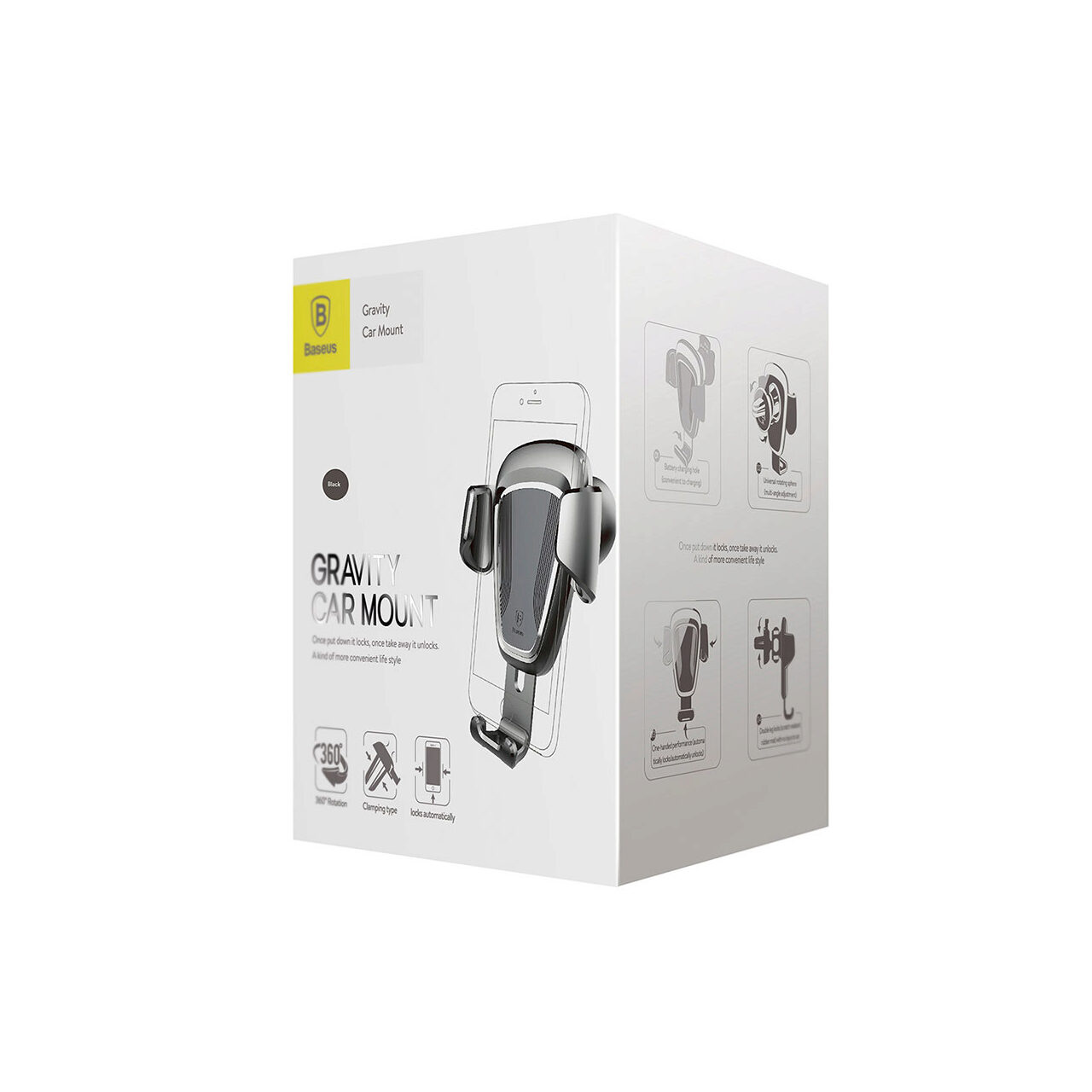 Suportul auto Gravity de la Baseus permite pozitionarea telefonului astfel incat sa il puteti utiliza la volan. Suportul se prinde in grilele de ventilatie ale masinii cu ajutorul unui buton One-Click, iar telefonul se prinde de suport foarte usor prin propria greutate. Pur si simplu asezati telefonul pe partea de jos a suportului, iar lateralele se apropie si blocheaza telefonul astfel incat acesta sa nu cada si sa nu se miste daca drumul prezinta denivelari. Scoaterea din suport este la fel de simpla reusind acest lucru cu o singura mana. Clips-ul de prindere in grile si suprafetele de contact cu marginile telefonului sunt acoperite cu un material cauciucat pentru a impiedica alunecarea si pentru a proteja telefonul.
