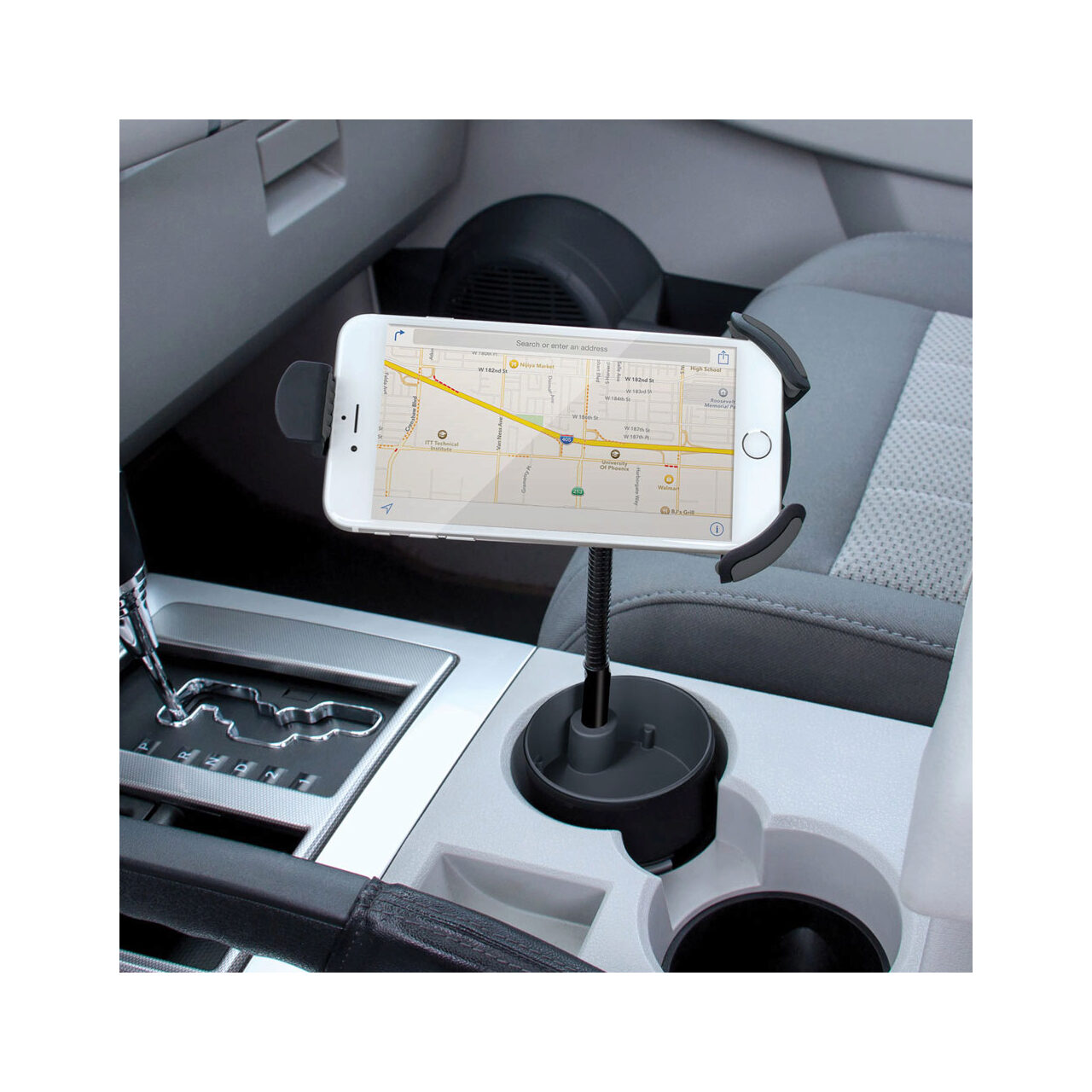 Este compatibil cu orice model de telefon cu diagonala de pana la 6.5 inci, cu fixare in suportul de pahar al autoturismului.