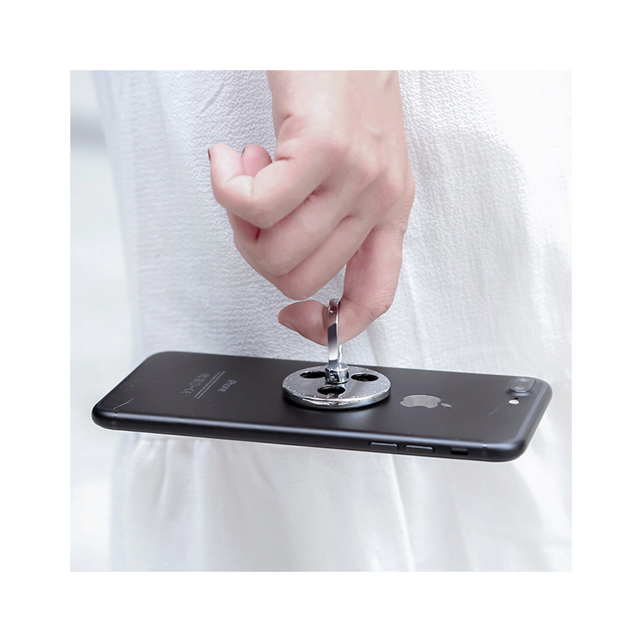 Suport Fidget Spinner Ring se roteste 360 de grade (atat inelul cat si baza se rotesc independent), are un design compact si subtire. Astfel, este un accesoriu discret si in acelasi timp extrem de util pentru smartphone-ul tau, dar si ca jucarie antistres.