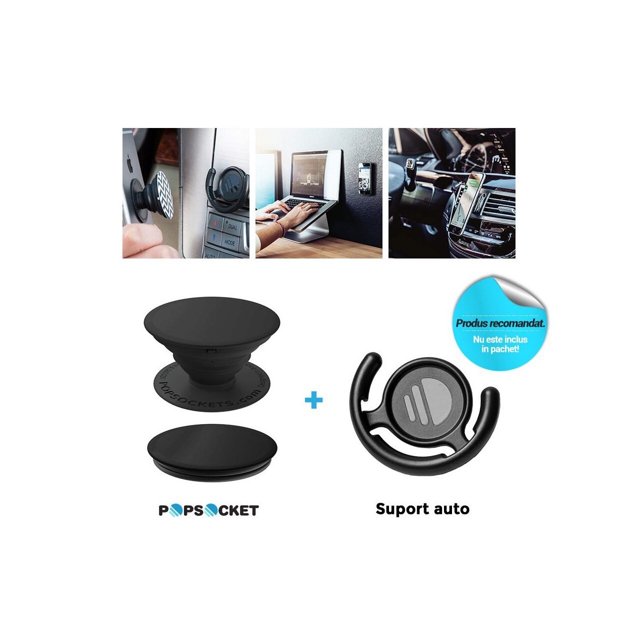 Suportul auto special pentru Popsockets PopGrip, NU este inclus in pachet!
