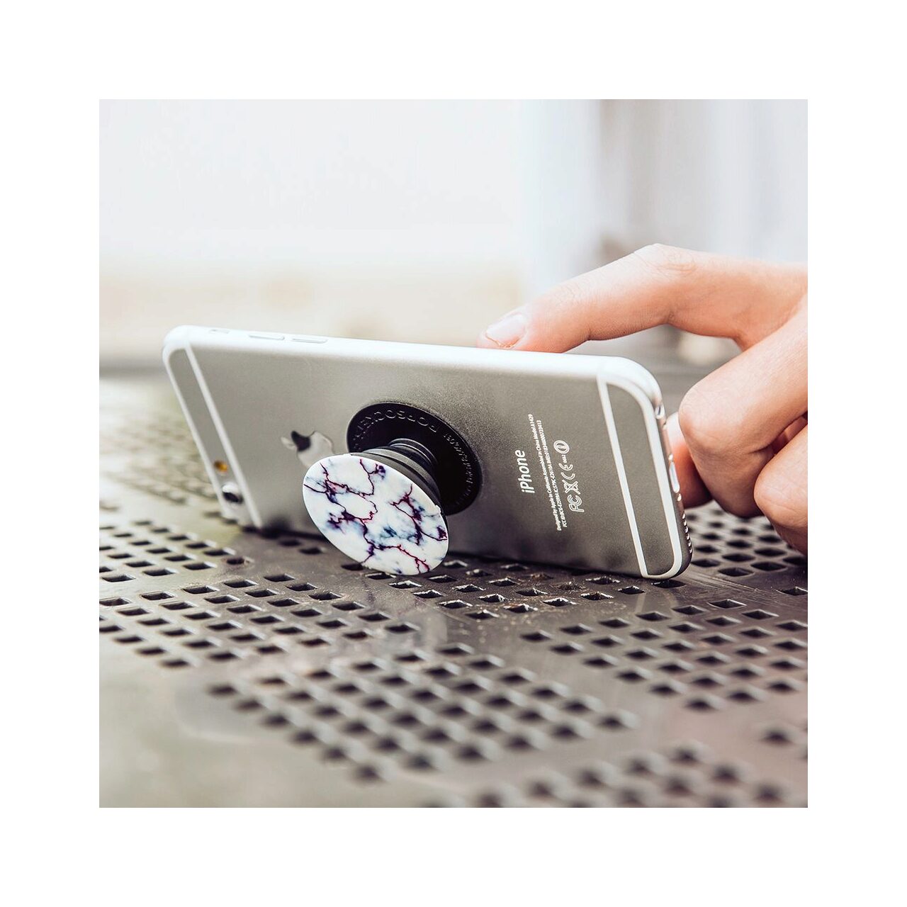 - permite pastrarea telefonului pe suparfete umede sau in apropierea acestora; Popsockets PopGrip este facut din policarbonat, TPU si poliuretan, materialul fiind rezistent la apa si permite spalarea acestuia.