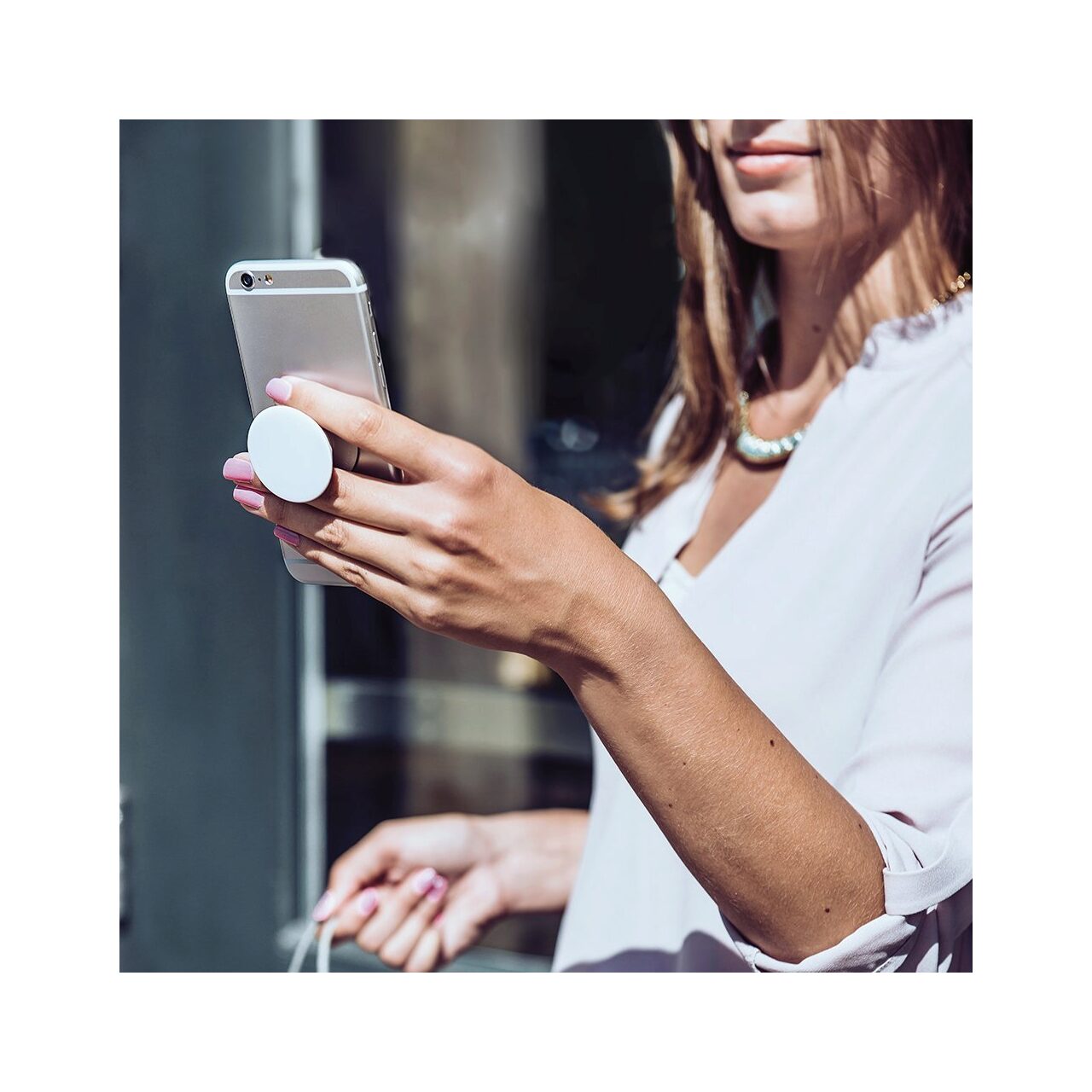 - permite pastrarea telefonului pe suparfete umede sau in apropierea acestora; Popsockets este facut din policarbonat, TPU si poliuretan, materialul fiind rezistent la apa si permite spalarea acestuia.