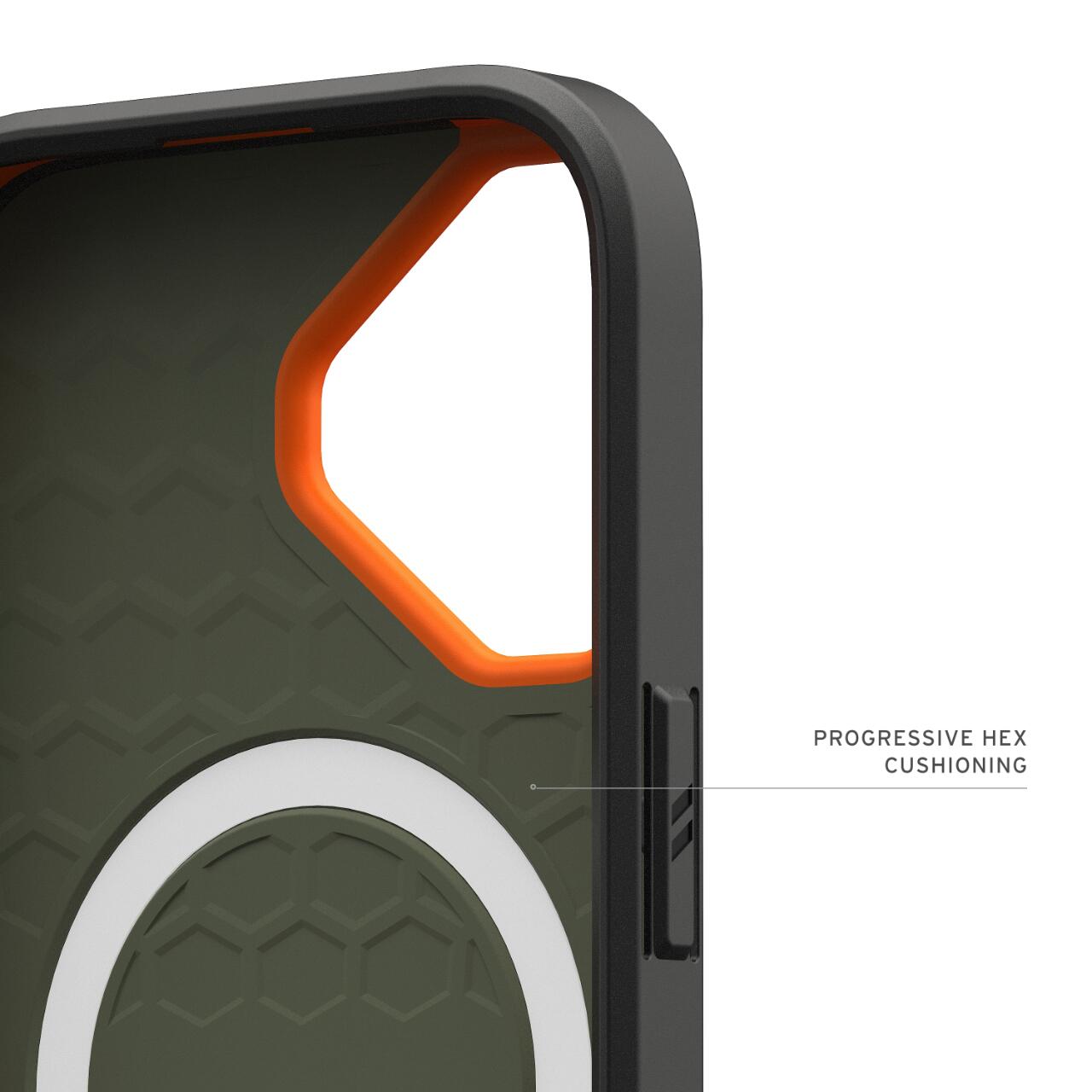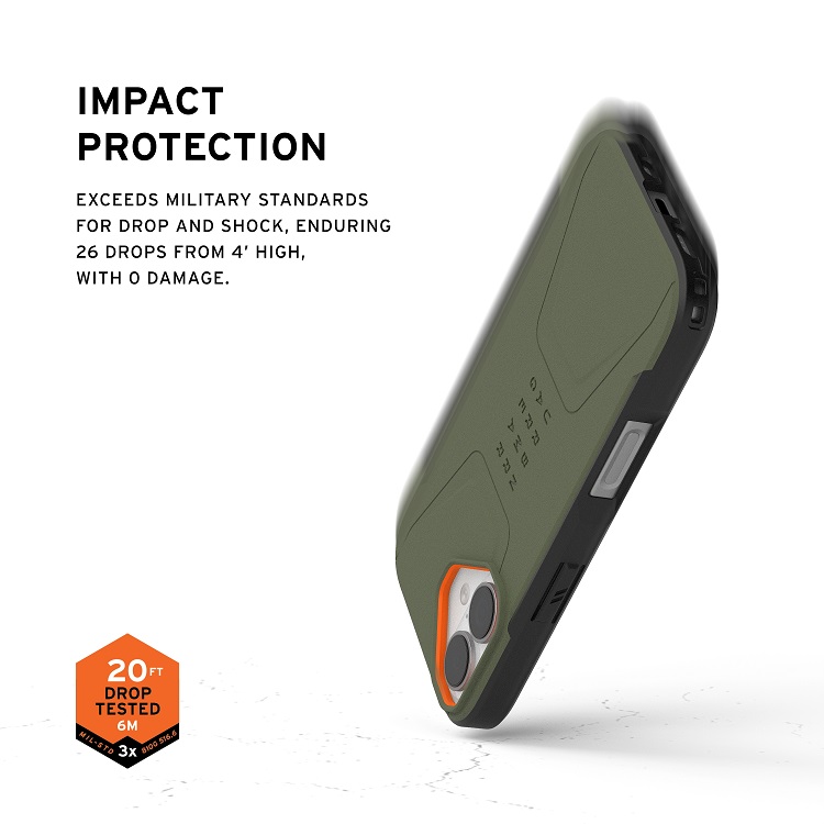 Husa Civilian Magsafe pentru iPhone 17 de la UAG este compusa din materiale premium, ce ofera protectie impotriva socurilor, cazaturilor si a zgarieturilor, pastrand telefonul in siguranta in orice situatie. Materialul dur al husei are in compozitie un miez moale de absorbtie a socurilor cu perna hexagonala, oferind protectie superioara fara a adauga volum inutil.