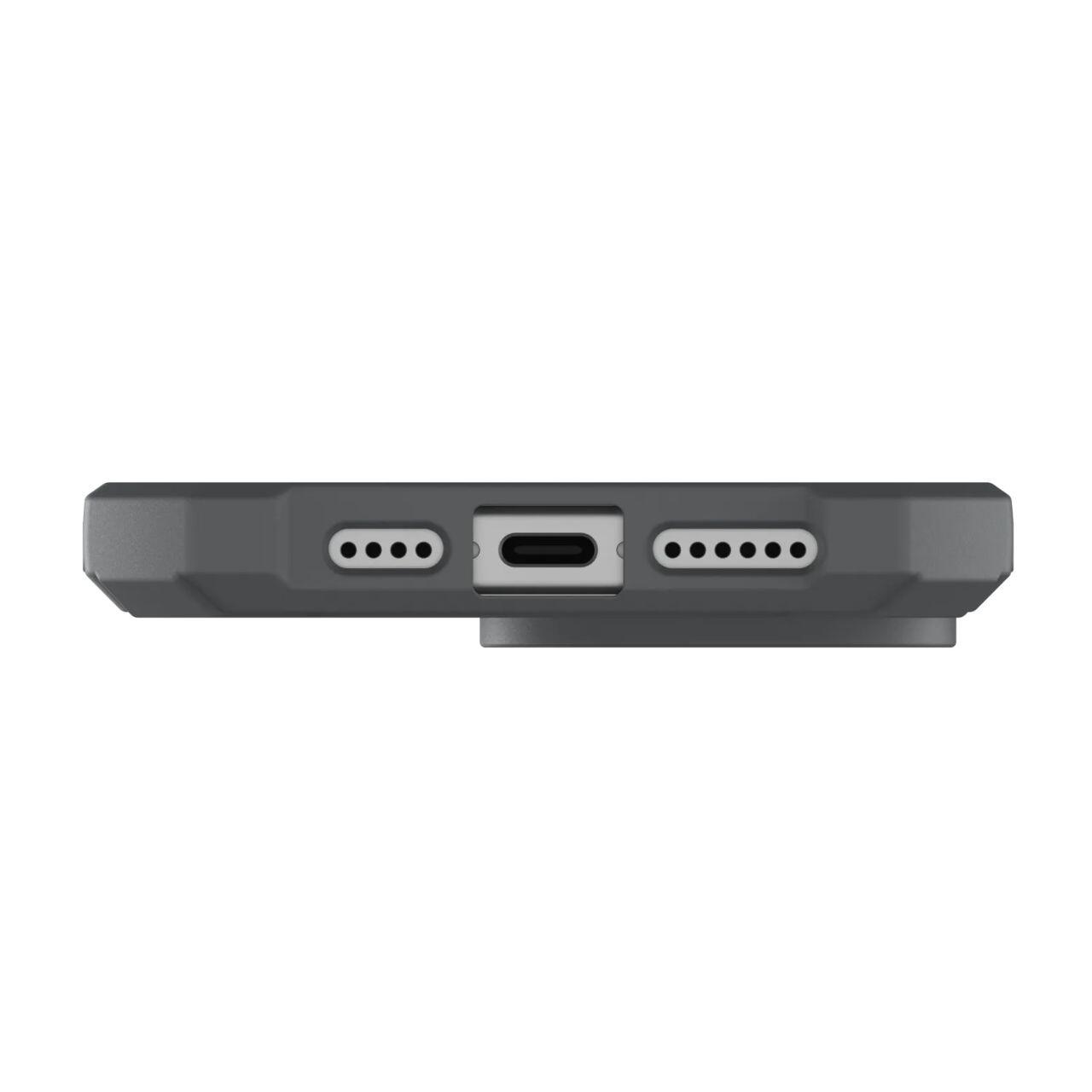 Husa Essential Armor Magsafe pentru iPhone 15 Pro Max de la UAG, ofera dispozitivului dumneavoastra un design subtire, ergonomic, protectie intarita pentru colturi, model hexagonal exterior pentru a dispersa impactul, proprietati antimicrobiene si o estetica UAG inconfundabila.