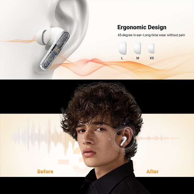 Scena sonora ofera o impresie de adancime surprinzatoare, iar driverele de 10 mm redau un sunet echilibrat pe intregul spectru de frecventa. Prin aplicatia Ugreen (Android / iOS), utilizatorul poate ajusta modurile de sunet pentru a obtine o semnatura sonora personalizata.