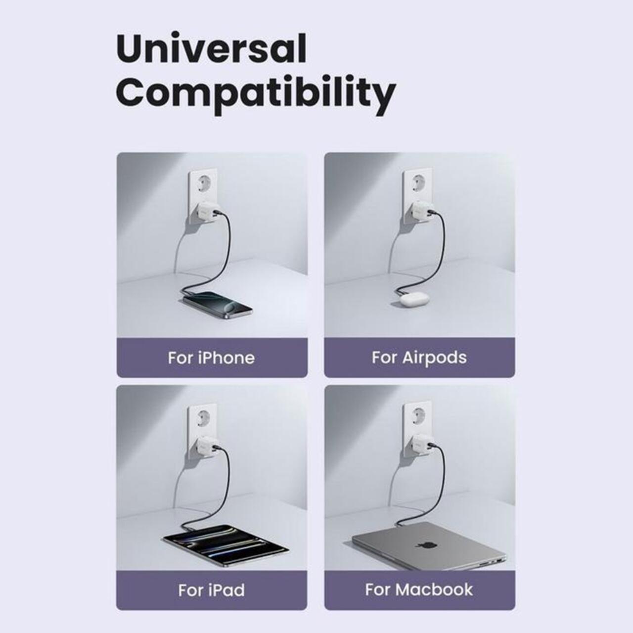 Incarcatorul Ugreen GaN 30W ofera alimentare rapida si sigura pentru doua dispozitive simultan, intr-un design compact si modern.