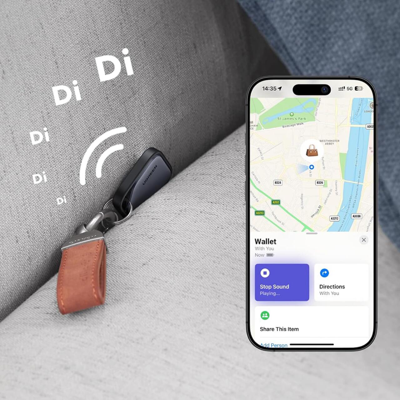 Smart Tracker compatibil cu Apple de la Ugreen, este conceput special pentru utilizatorii Apple si functioneaza exclusiv cu dispozitive iPhone, iPad si Mac, folosind aplicatia Find My incorporata. Nu necesita software suplimentar si este certificat oficial Apple Find My Certified.