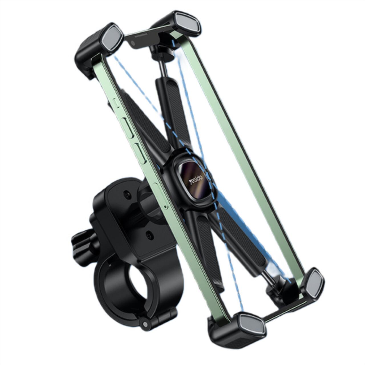 Suportul de telefon Yesido pentru bicicleta, motocicleta sau scuter, este solutia ideala pentru utilizarea telefonului in timpul deplasarilor. Conceput pentru stabilitate si siguranta, acesta iti permite sa ai telefonul mereu la indemana, fie ca folosesti GPS-ul sau raspunzi la apeluri.