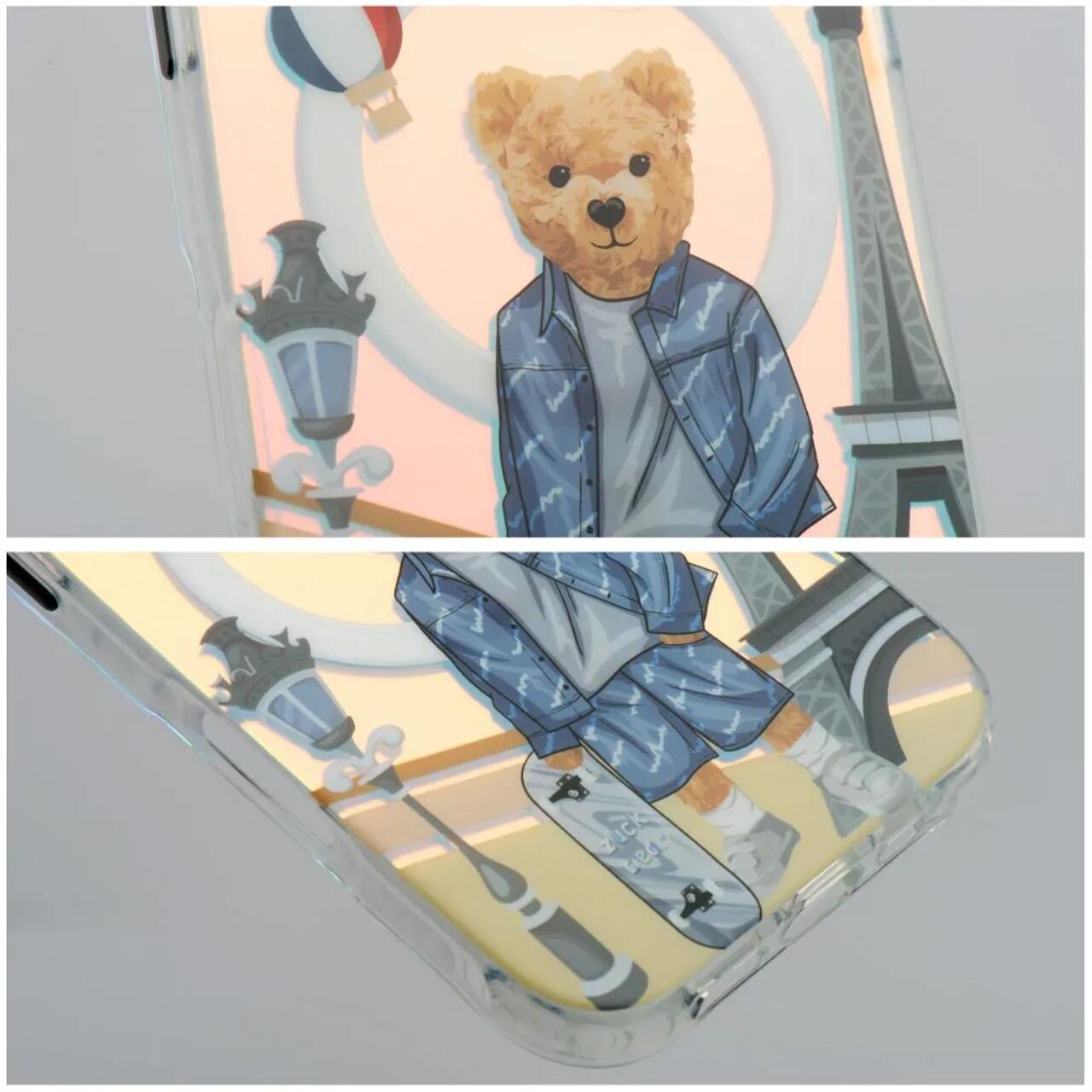 Husa Darnell Frosted Laser Paris MagSafe Zuck Bear pentru iPhone 16 Pro, combina designul futurist cu eleganta inspirata de stilul parizian. Elementul cheie este motivul unic brodat de urs Zuck, care simbolizeaza calitatea si creativitatea, in timp ce finisajul cu laser subliniaza caracterul modern al husei.